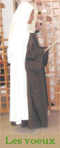 Par ses voeux solennels de chasteté, d'obéissance et de pauvreté, elle s'engage à "une vie d'allégeance à Jesus-Christ". C'est là sa réponse inconditionnelle à l'amour que Dieu lui témoigne et l'appel qu'Il lui fait.